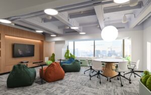Поддержка культуры общения: обилие функциональных зон (лаунж-зоны, кофе-поинты, места для неформального общения и обучения) создают условия для коммуникации и сплочения.