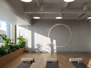 Здесь можно выбрать формат отдыха по настроению: вечером прийти с коллегами в игровую зону, чтобы отвлечься и зарядиться энергией, позаниматься спортом перед началом работы или же в течение дня ненадолго уединиться в комнате для медитаций — для восстановления внутреннего баланса.