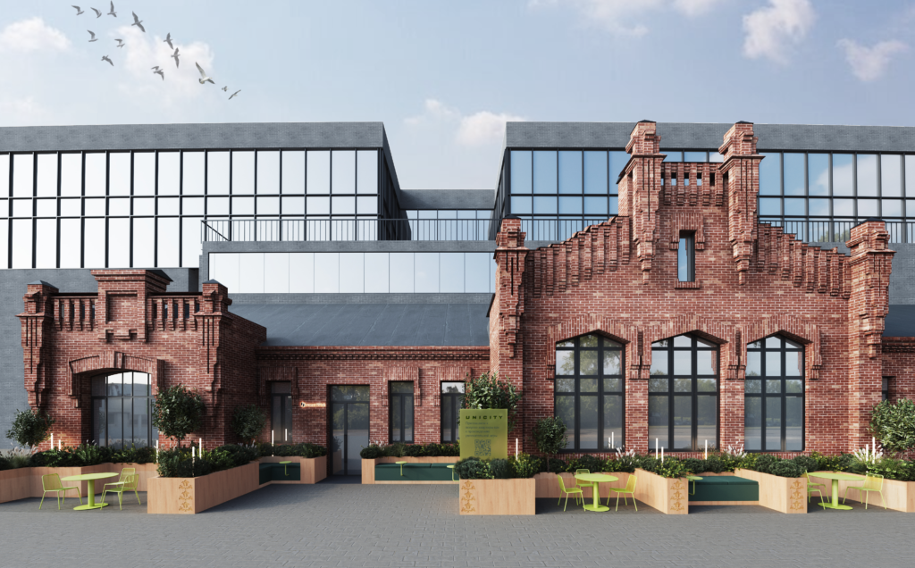 While designing the sales office, we were particularly focused on the reception area, the first thing clients see. The reception desk is made of concrete with the project logo. One wall is finished with dry moss and plaques with the company’s awards. The space creates a wow effect in clients, shaping their opinions on the neighborhood.